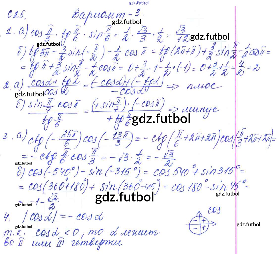 Готовые домашние задания по Алгебре за 9 класс Журавлев Контрольные и самостоятельные работы УМК 2016 ФГОС - С-25. Свойства тригонометрических функций Вариант №3
