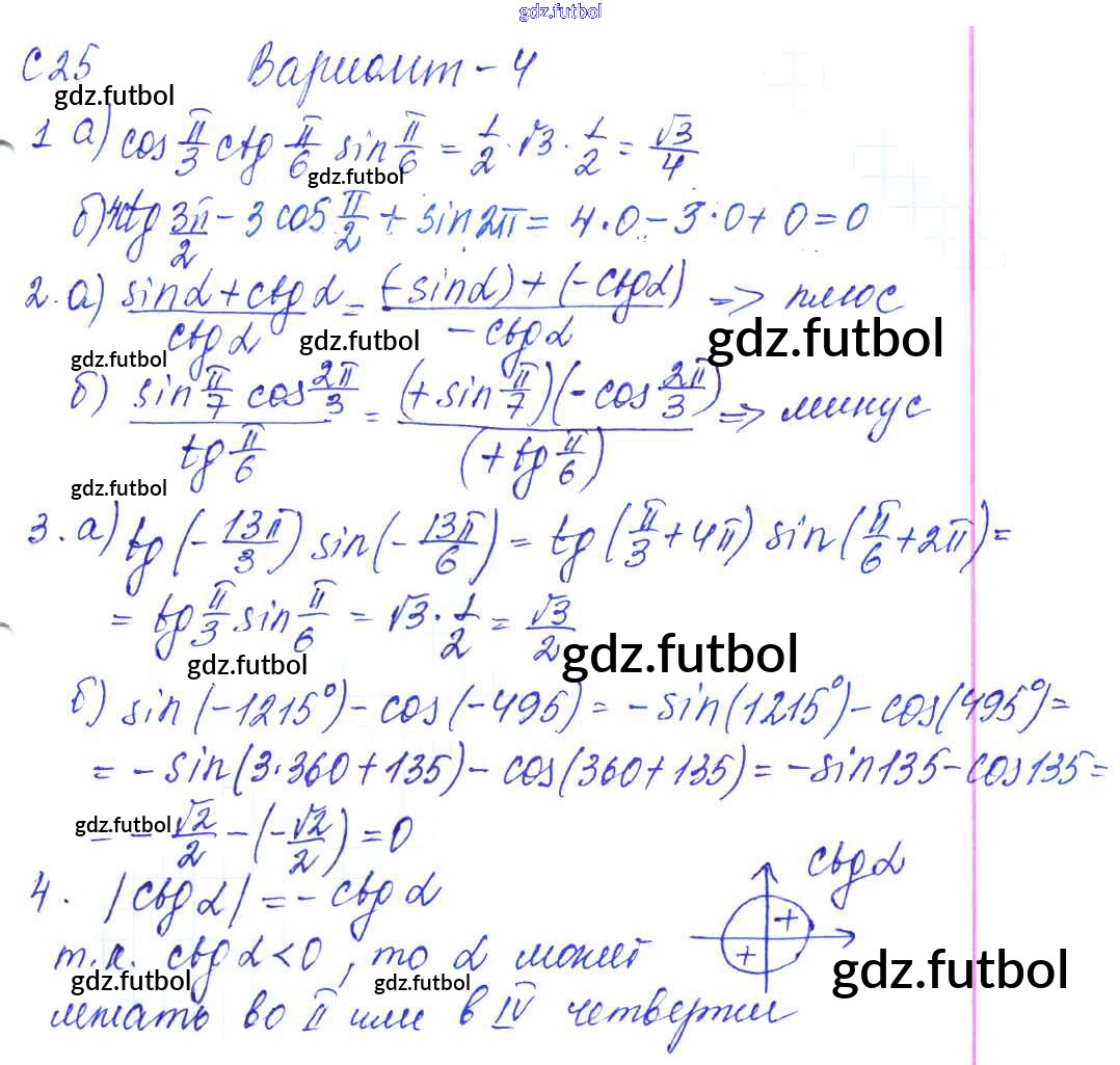 Готовые домашние задания по Алгебре за 9 класс Журавлев Контрольные и самостоятельные работы УМК 2016 ФГОС - С-25. Свойства тригонометрических функций Вариант №4