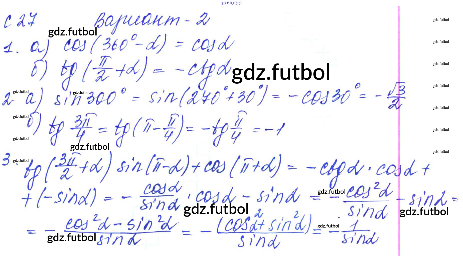 Готовые домашние задания по Алгебре за 9 класс Журавлев Контрольные и самостоятельные работы УМК 2016 ФГОС - С-27. Формулы приведения Вариант №2