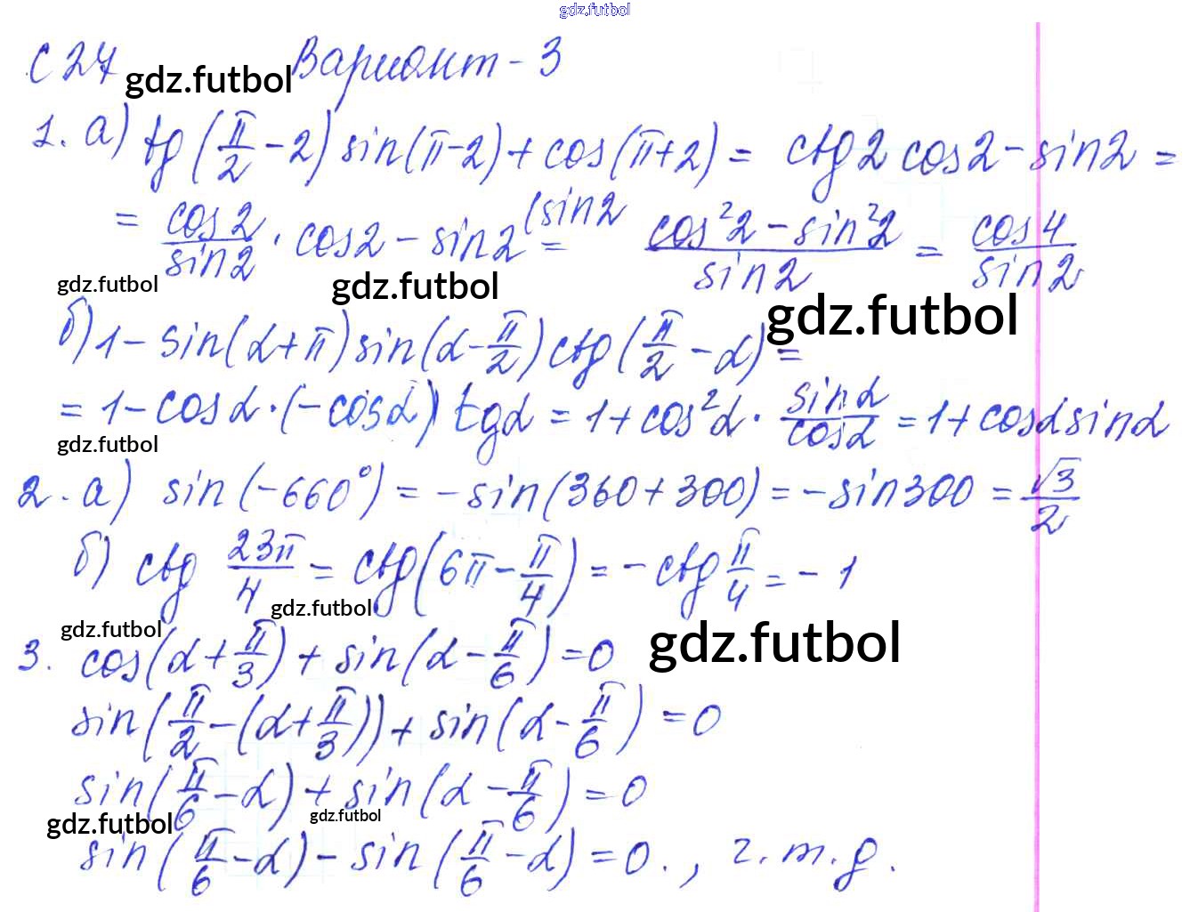 Готовые домашние задания по Алгебре за 9 класс Журавлев Контрольные и самостоятельные работы УМК 2016 ФГОС - С-27. Формулы приведения Вариант №3