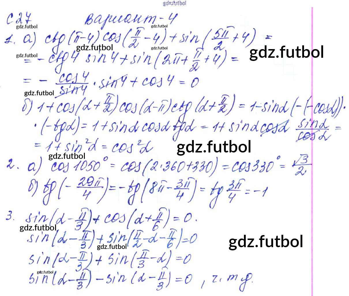 Готовые домашние задания по Алгебре за 9 класс Журавлев Контрольные и самостоятельные работы УМК 2016 ФГОС - С-27. Формулы приведения Вариант №4