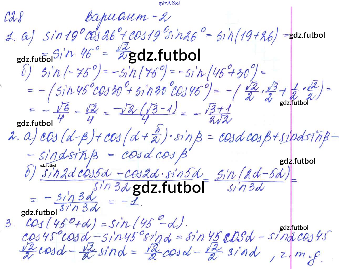 Готовые домашние задания по Алгебре за 9 класс Журавлев Контрольные и самостоятельные работы УМК 2016 ФГОС - С-28. Формулы сложения Вариант №2