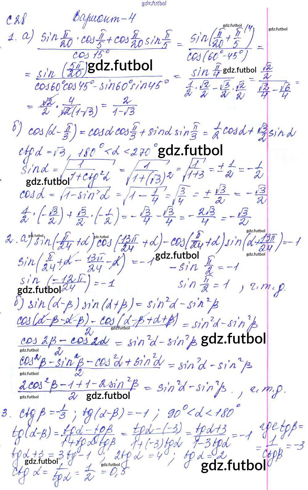 Готовые домашние задания по Алгебре за 9 класс Журавлев Контрольные и самостоятельные работы УМК 2016 ФГОС - С-28. Формулы сложения Вариант №4