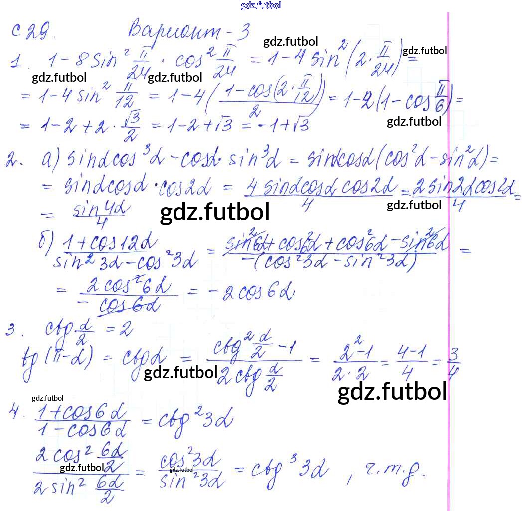 Готовые домашние задания по Алгебре за 9 класс Журавлев Контрольные и самостоятельные работы УМК 2016 ФГОС - С-29. Формулы двойного угла Вариант №3