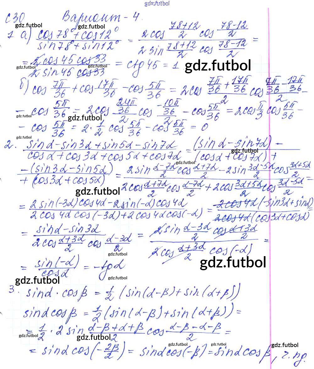 Готовые домашние задания по Алгебре за 9 класс Журавлев Контрольные и самостоятельные работы УМК 2016 ФГОС - С-30. Формулы суммы и разности тригонометрических функций Вариант №4