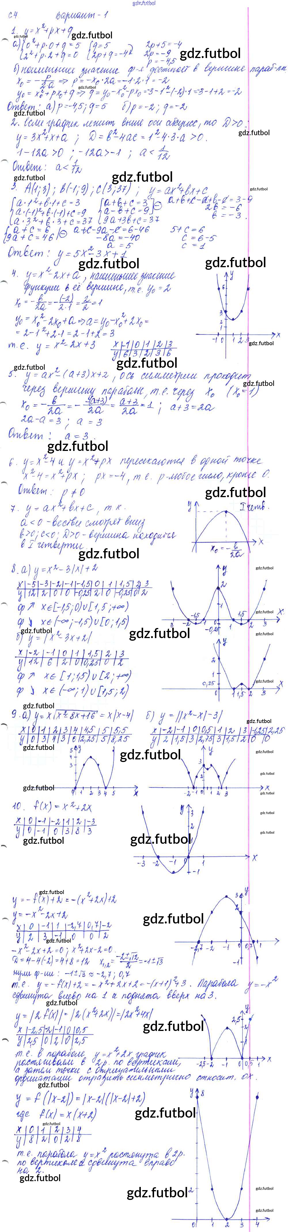 Готовые домашние задания по Алгебре за 9 класс Журавлев Контрольные и самостоятельные работы УМК 2016 ФГОС - С-4. Квадратичная функция - задачи с параметрами Вариант №1