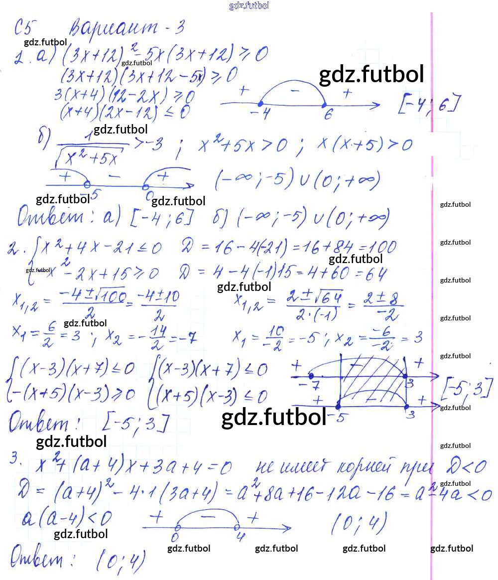 Готовые домашние задания по Алгебре за 9 класс Журавлев Контрольные и самостоятельные работы УМК 2016 ФГОС - С-5. Решение квадратичных неравенств Вариант №3