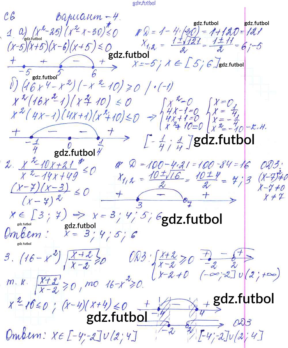 Готовые домашние задания по Алгебре за 9 класс Журавлев Контрольные и самостоятельные работы УМК 2016 ФГОС - С-6. Решение неравенств методом интервалов Вариант №4
