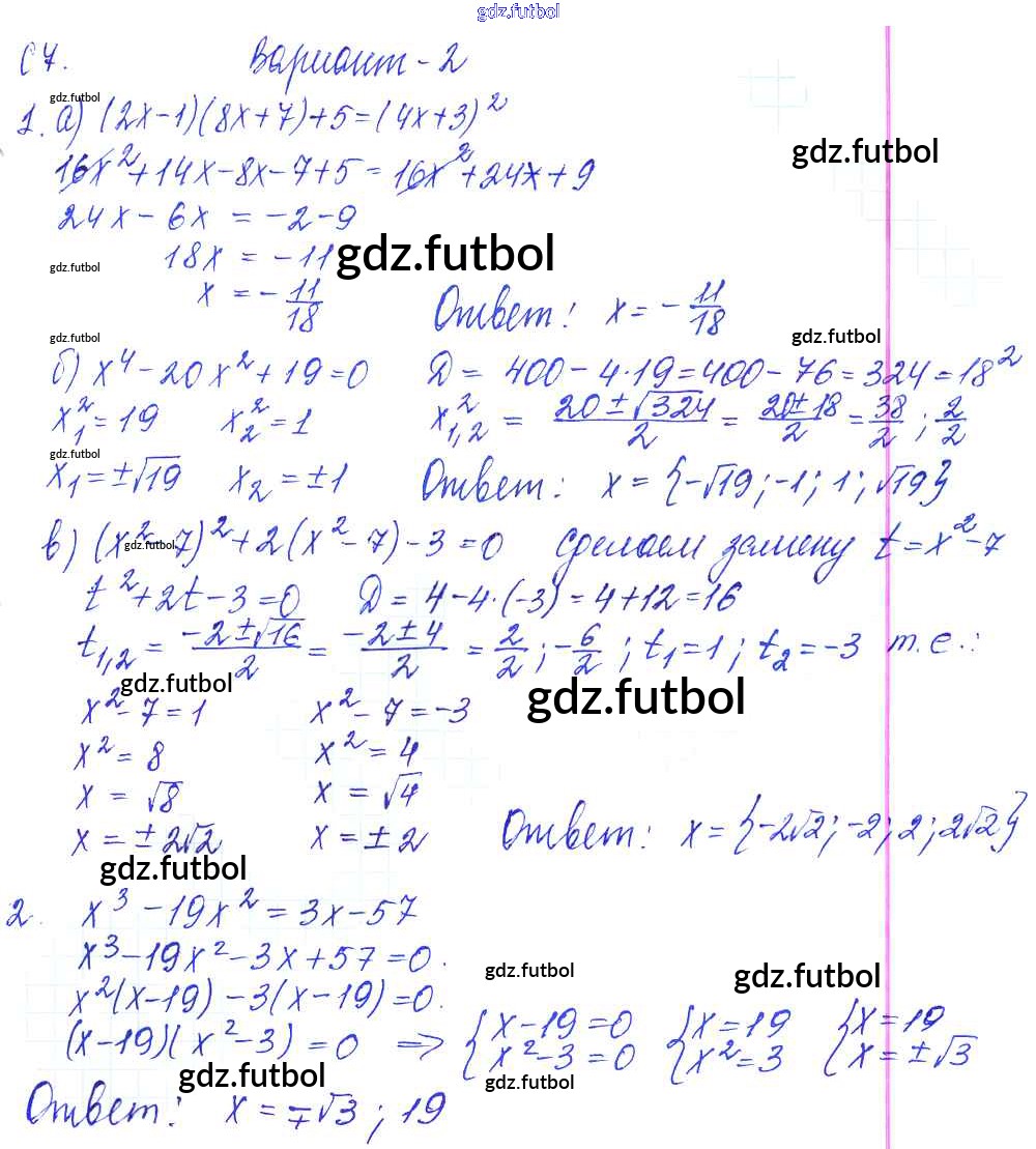 Готовые домашние задания по Алгебре за 9 класс Журавлев Контрольные и самостоятельные работы УМК 2016 ФГОС - С-7. Решение целых уравнений Вариант №2