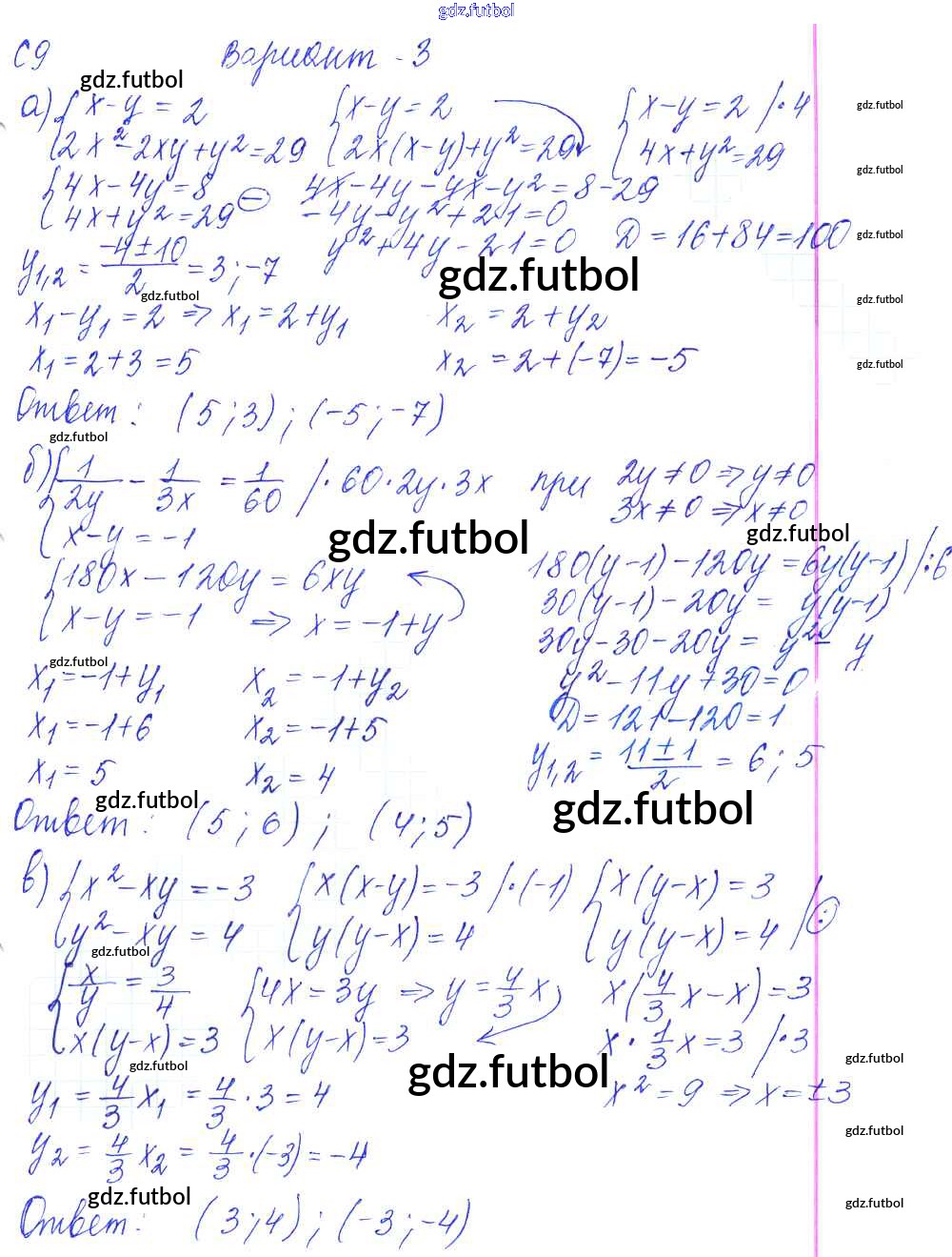 Готовые домашние задания по Алгебре за 9 класс Журавлев Контрольные и самостоятельные работы УМК 2016 ФГОС - С-9. Решение систем уравнений второй степени Вариант №3