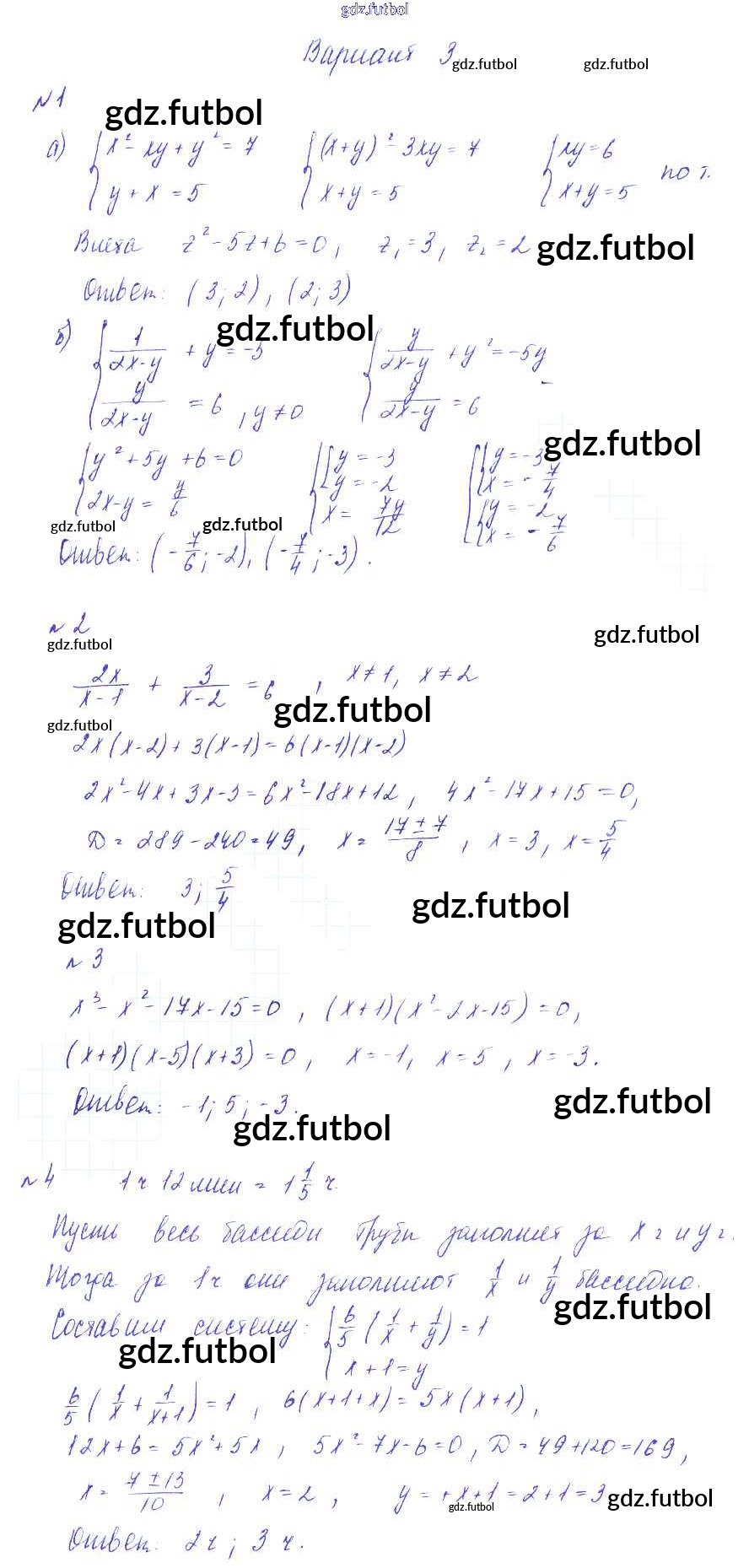 Готовые домашние задания по Алгебре за 9 класс Зив Дидактические материалы 2013 ФГОС - КР-1. Алгебраические уравнения. Системы алгебраических уравнений вариант 3