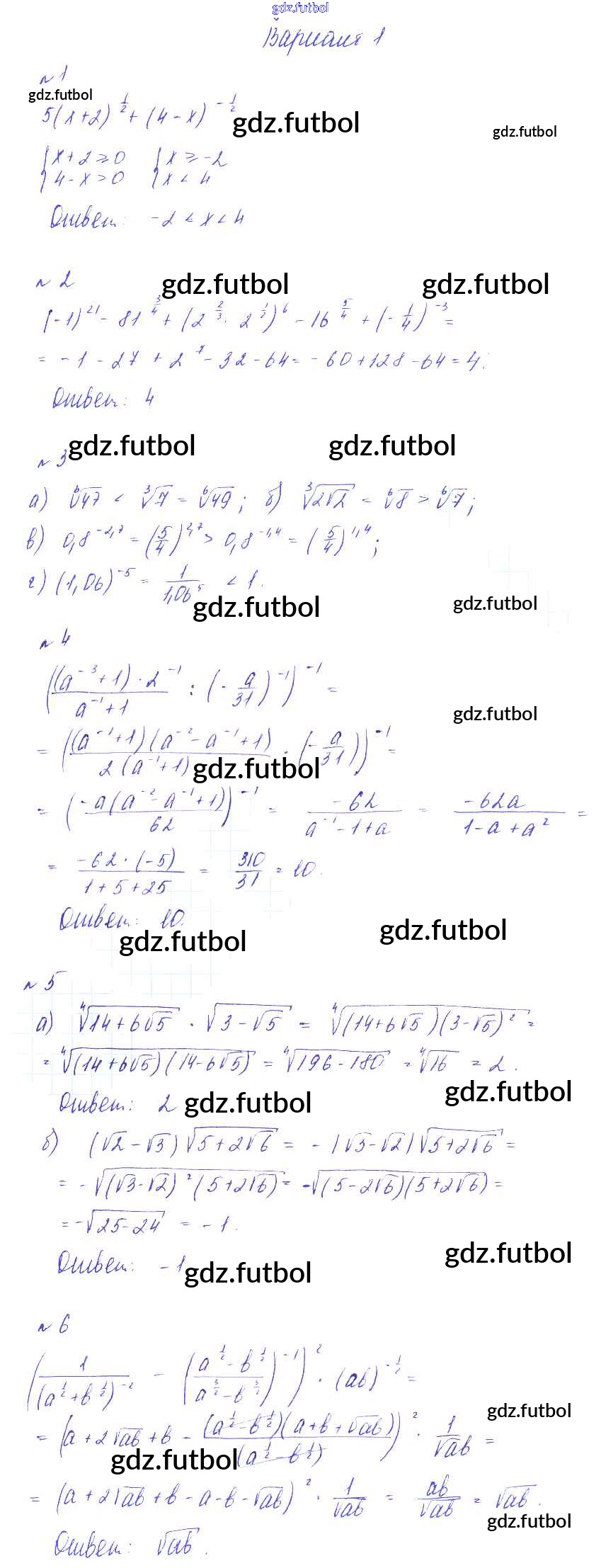 Готовые домашние задания по Алгебре за 9 класс Зив Дидактические материалы 2013 ФГОС - КР-2. Степень с рациональным показателем вариант 1