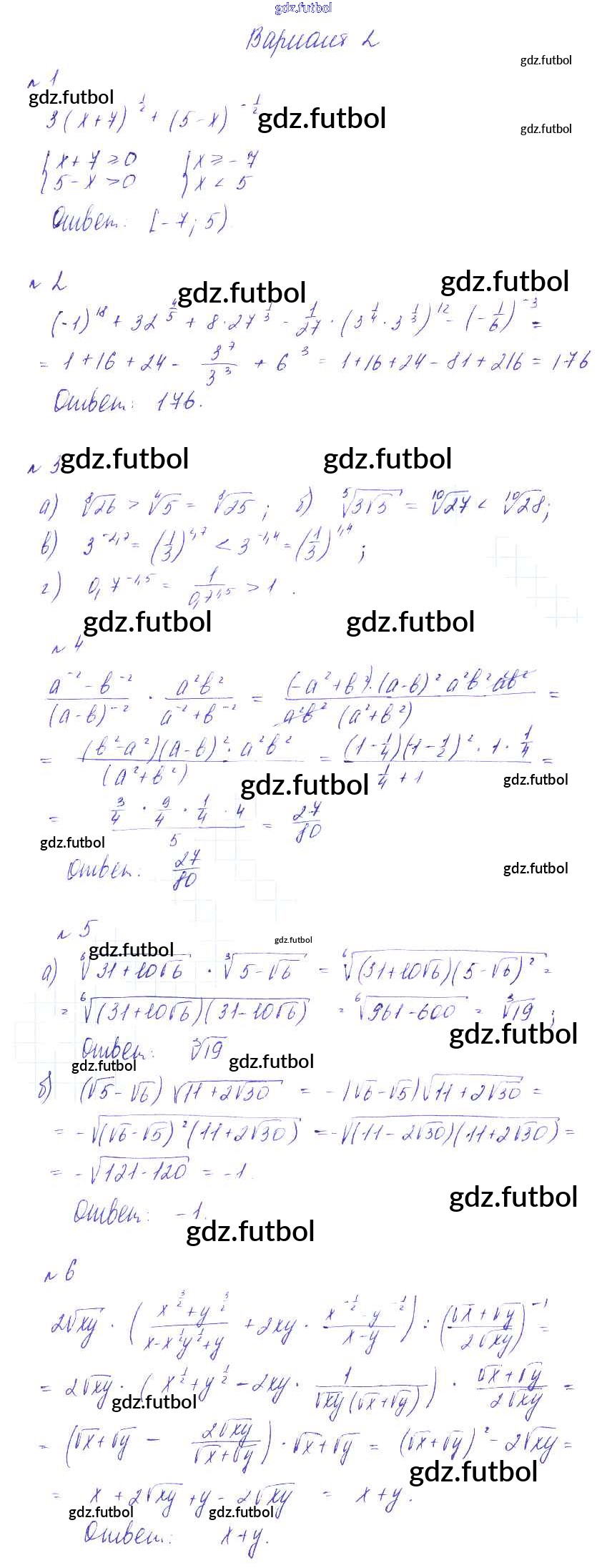 Готовые домашние задания по Алгебре за 9 класс Зив Дидактические материалы 2013 ФГОС - КР-2. Степень с рациональным показателем вариант 2