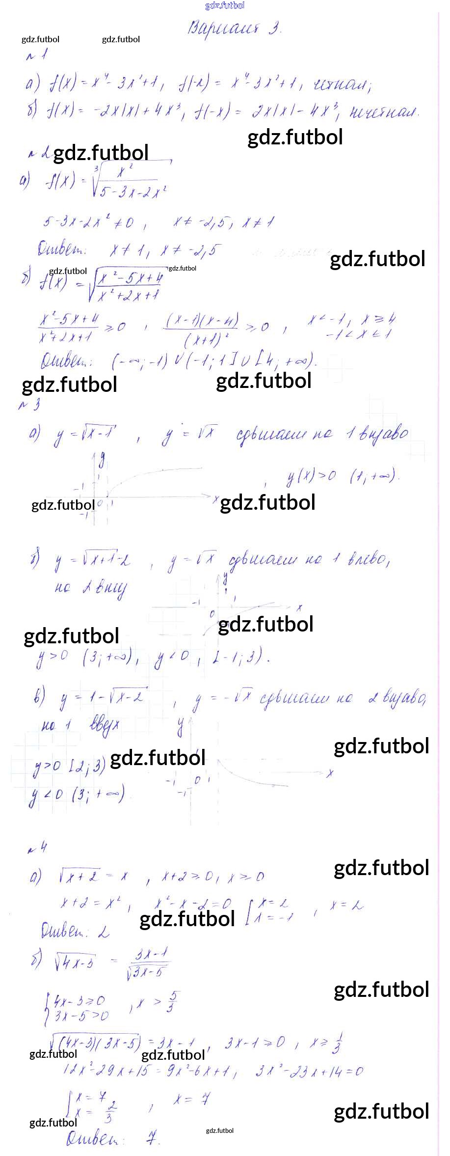 Готовые домашние задания по Алгебре за 9 класс Зив Дидактические материалы 2013 ФГОС - КР-3. Степенная функция вариант 3