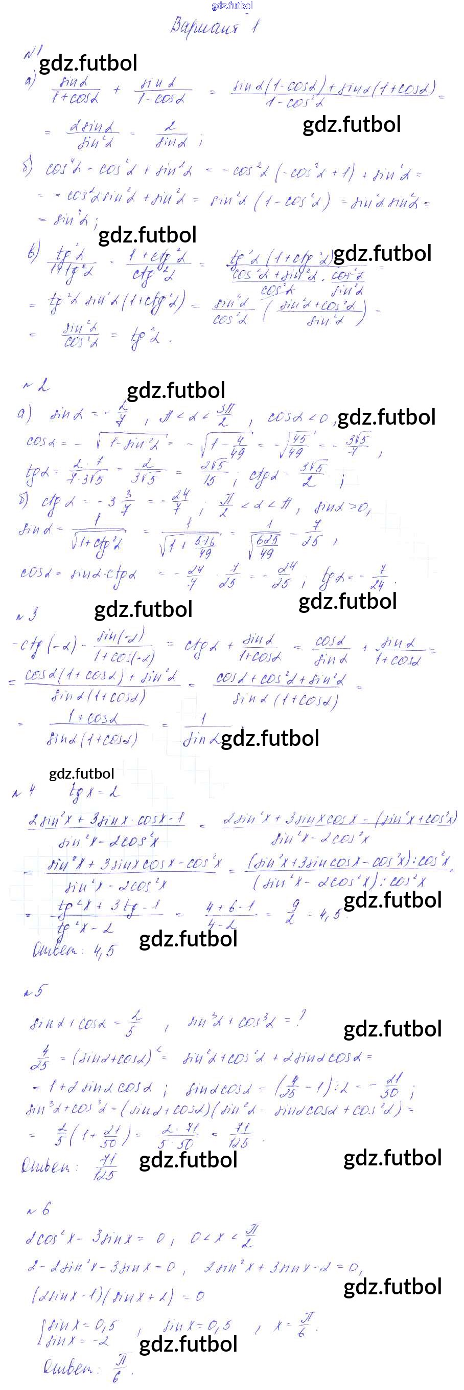 Готовые домашние задания по Алгебре за 9 класс Зив Дидактические материалы 2013 ФГОС - КР-4. Основные тригонометрические тождества вариант 1