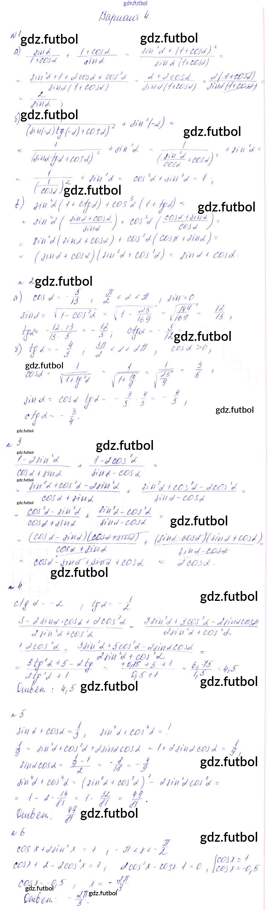 Готовые домашние задания по Алгебре за 9 класс Зив Дидактические материалы 2013 ФГОС - КР-4. Основные тригонометрические тождества вариант 4