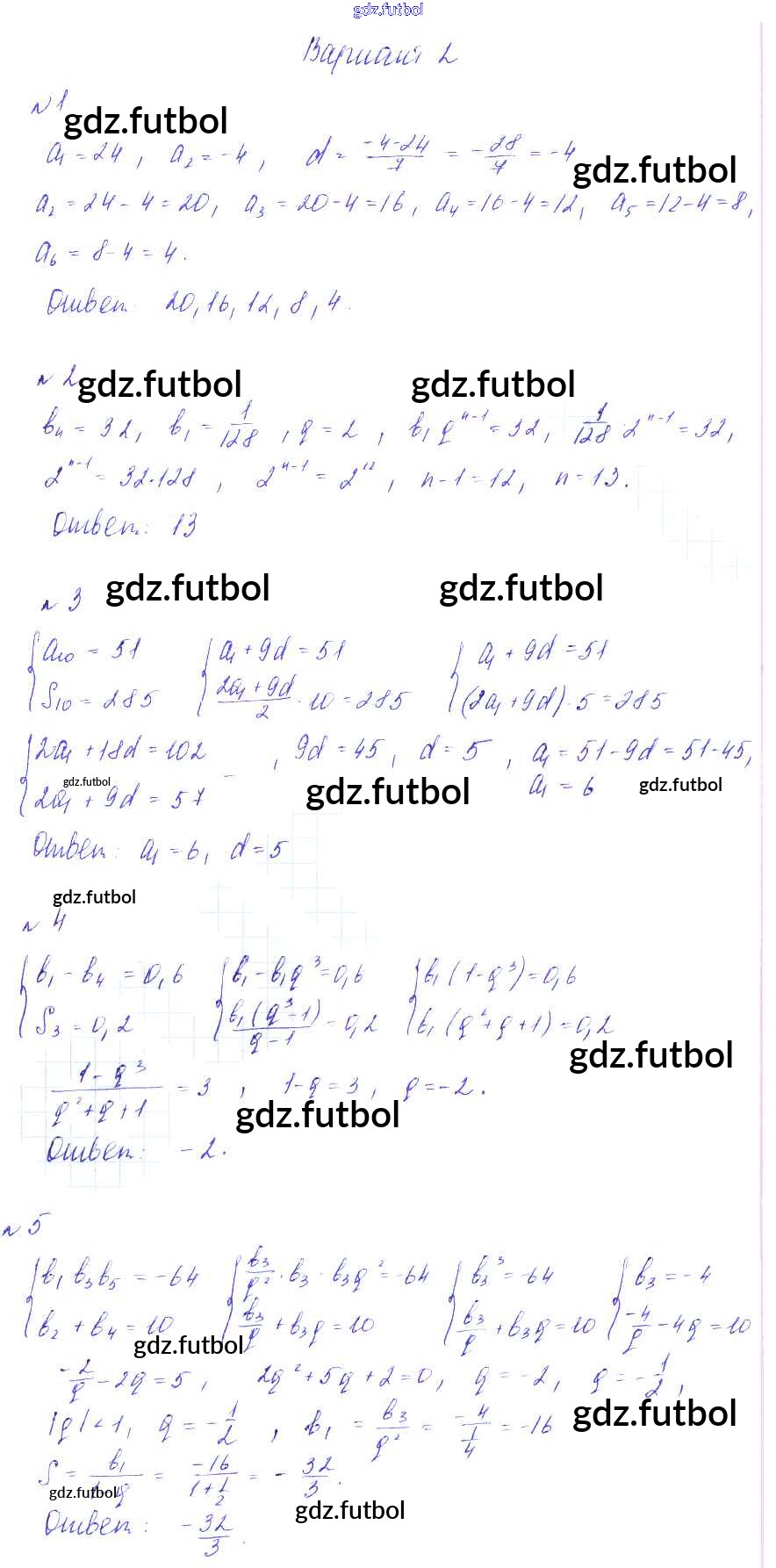Готовые домашние задания по Алгебре за 9 класс Зив Дидактические материалы 2013 ФГОС - КР-6. Прогрессии вариант 2
