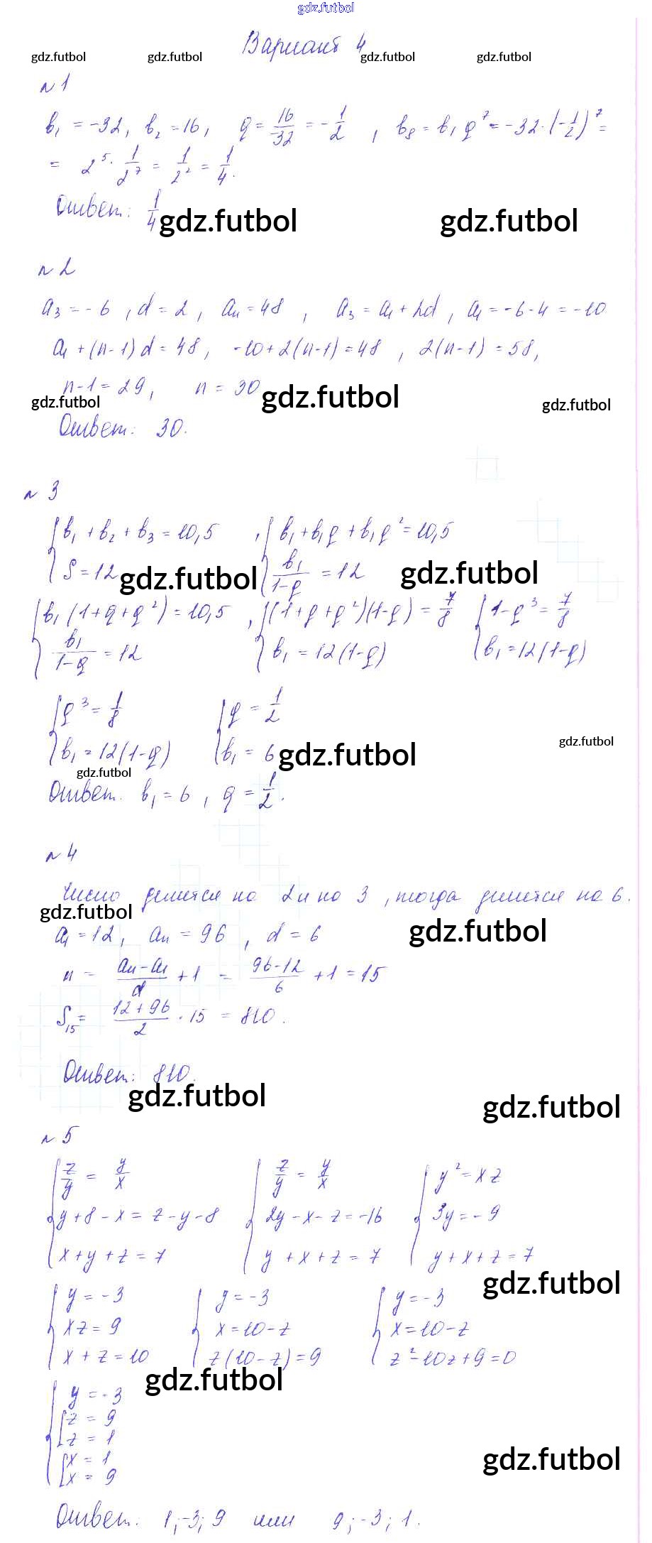 Готовые домашние задания по Алгебре за 9 класс Зив Дидактические материалы 2013 ФГОС - КР-6. Прогрессии вариант 4