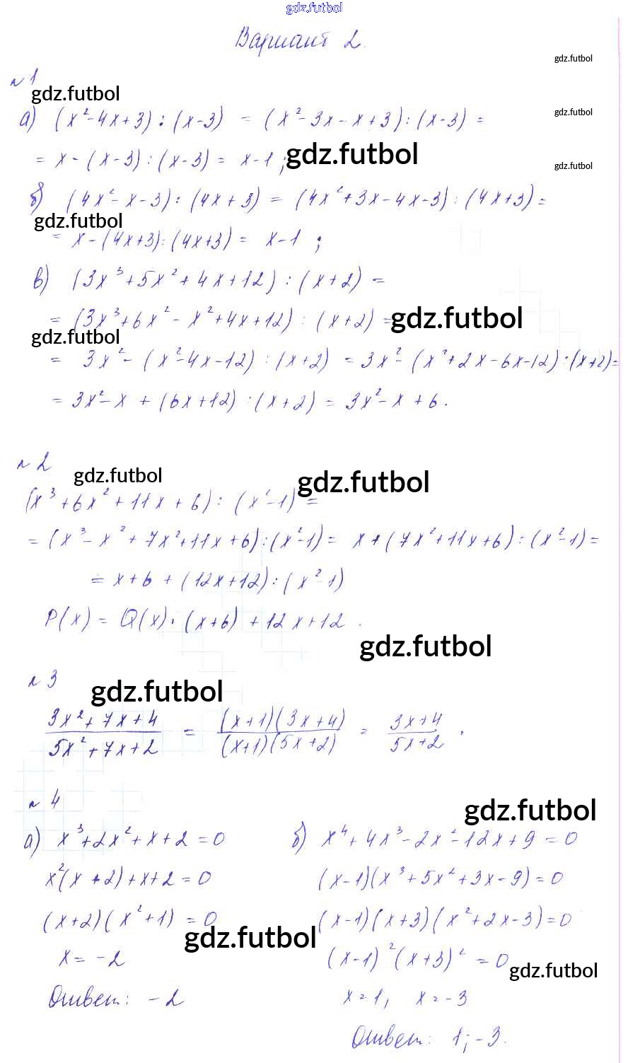 Готовые домашние задания по Алгебре за 9 класс Зив Дидактические материалы 2013 ФГОС - СР-1. Деление многочленов. Решение алгебраических уравнений вариант 2