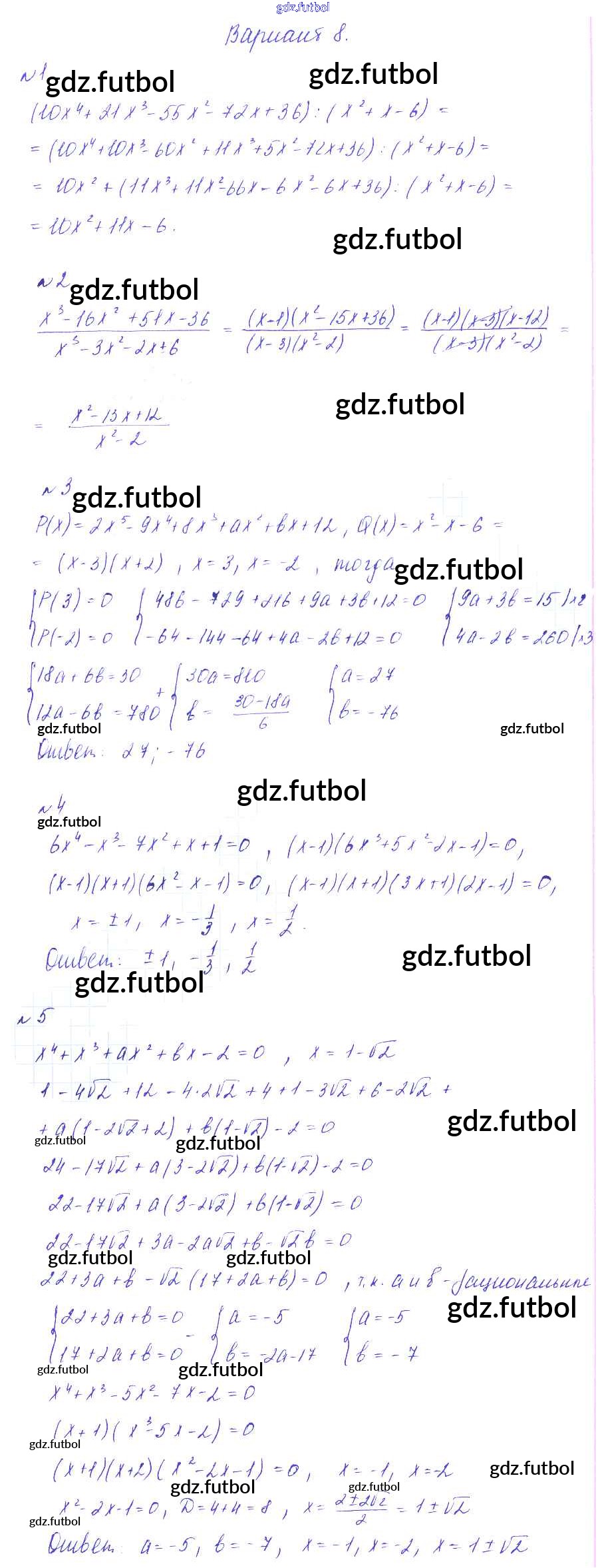 Готовые домашние задания по Алгебре за 9 класс Зив Дидактические материалы 2013 ФГОС - СР-1. Деление многочленов. Решение алгебраических уравнений вариант 8