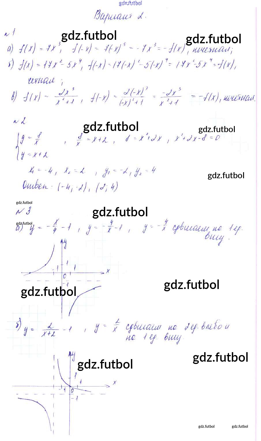 Готовые домашние задания по Алгебре за 9 класс Зив Дидактические материалы 2013 ФГОС - СР-10. Четность и нечетность функции. Функция у = k делить на х вариант 2