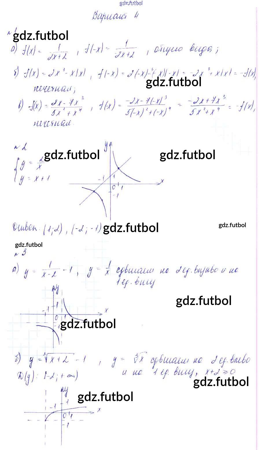 Готовые домашние задания по Алгебре за 9 класс Зив Дидактические материалы 2013 ФГОС - СР-10. Четность и нечетность функции. Функция у = k делить на х вариант 4
