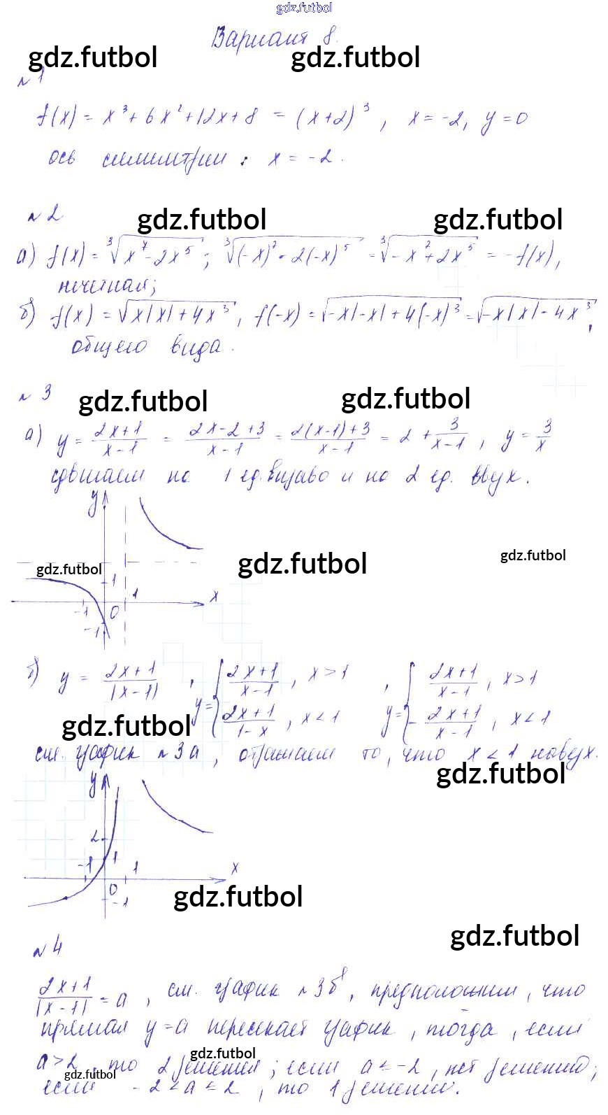 Готовые домашние задания по Алгебре за 9 класс Зив Дидактические материалы 2013 ФГОС - СР-10. Четность и нечетность функции. Функция у = k делить на х вариант 8