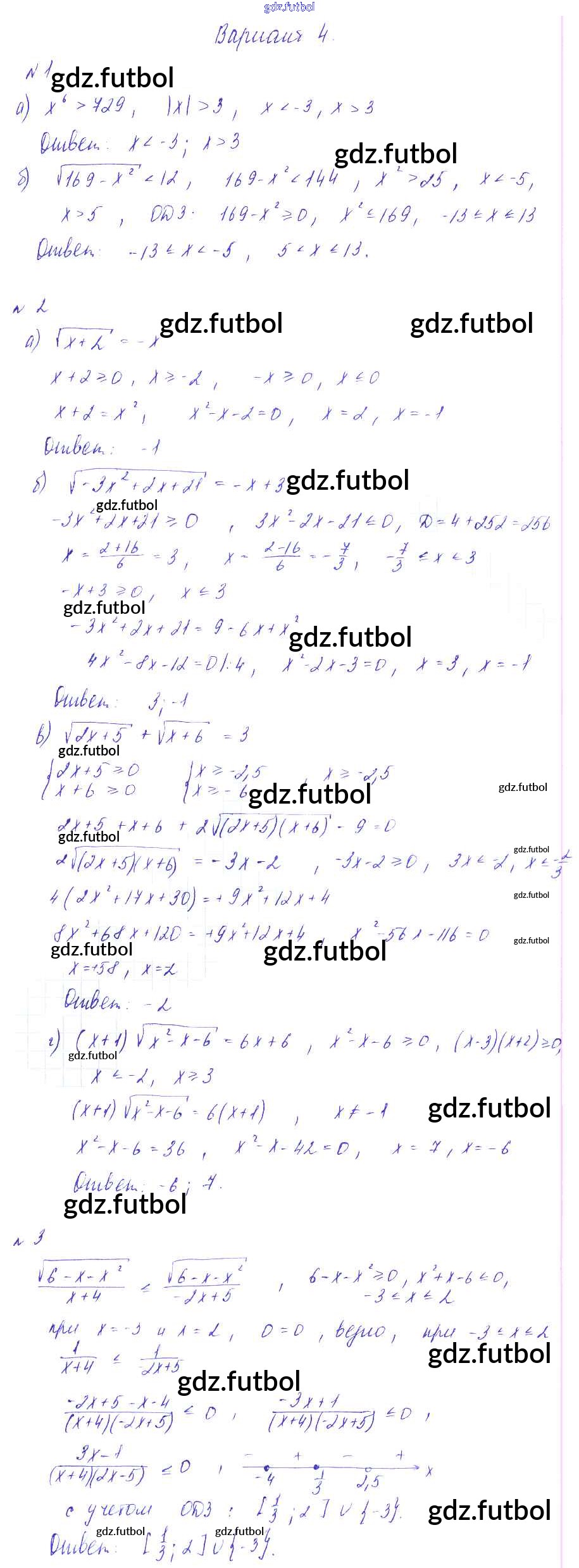 Готовые домашние задания по Алгебре за 9 класс Зив Дидактические материалы 2013 ФГОС - СР-11. Неравенства и уравнения, содержащие степень вариант 4