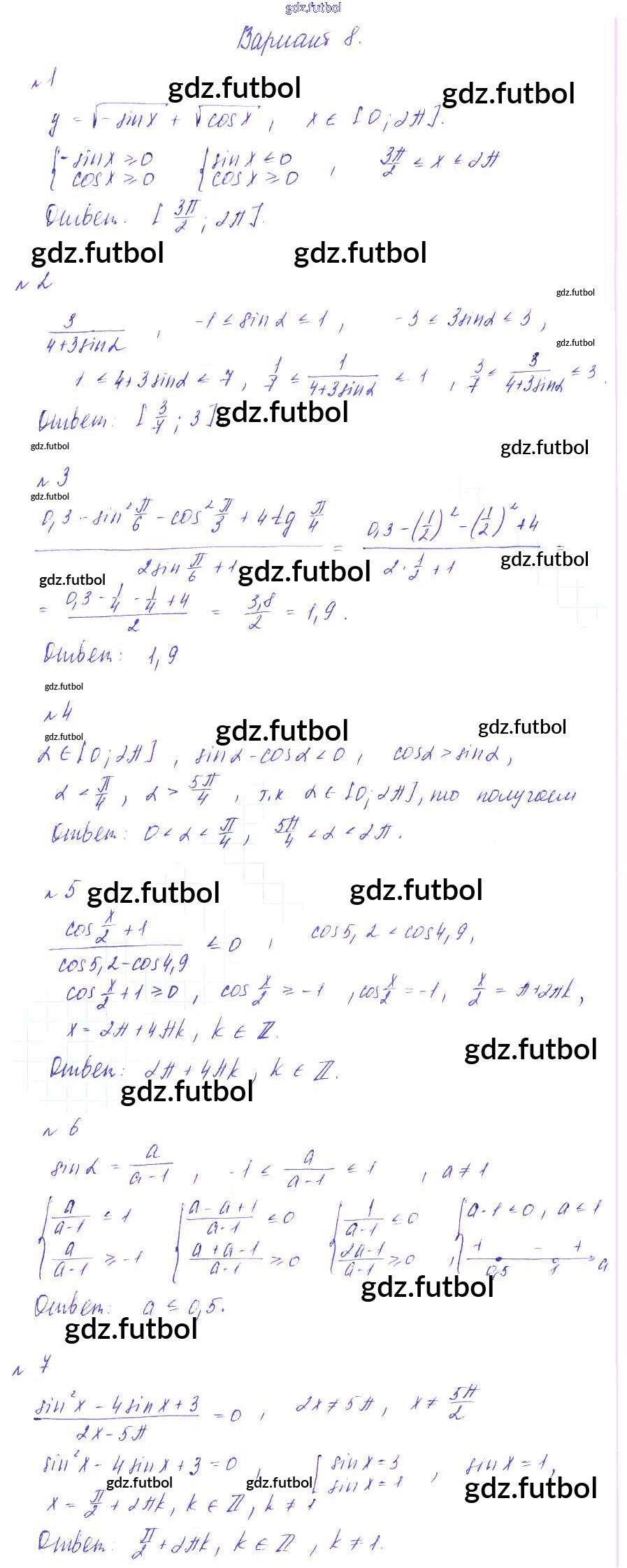 Готовые домашние задания по Алгебре за 9 класс Зив Дидактические материалы 2013 ФГОС - СР-12. Радианная мера угла вариант 8