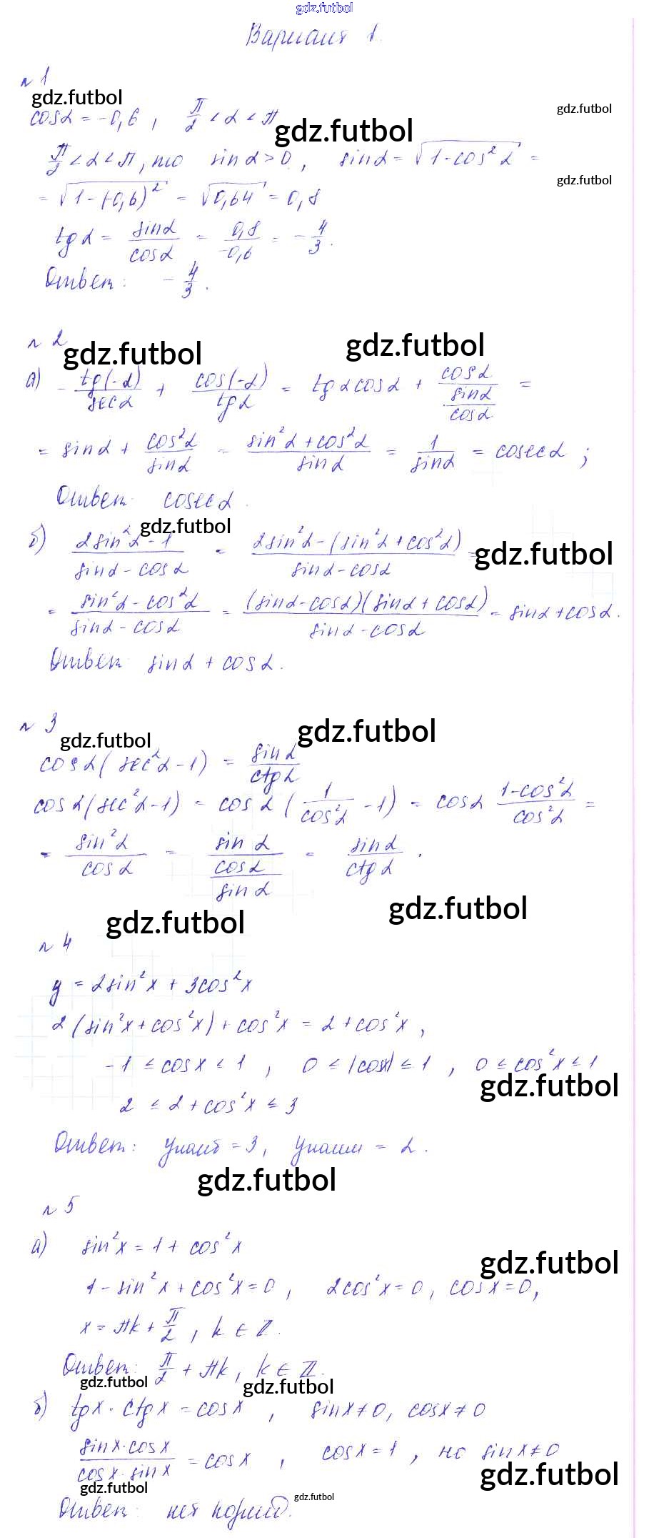 Готовые домашние задания по Алгебре за 9 класс Зив Дидактические материалы 2013 ФГОС - СР-13. Тригонометрические тождества вариант 1