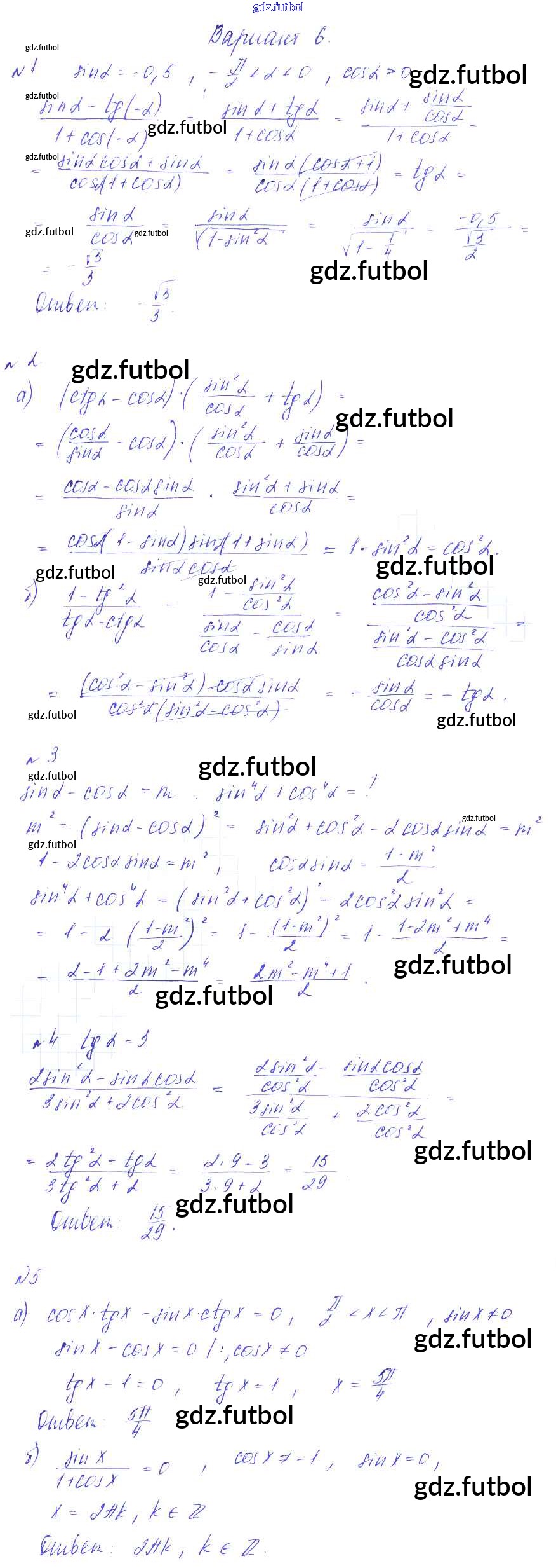 Готовые домашние задания по Алгебре за 9 класс Зив Дидактические материалы 2013 ФГОС - СР-13. Тригонометрические тождества вариант 6