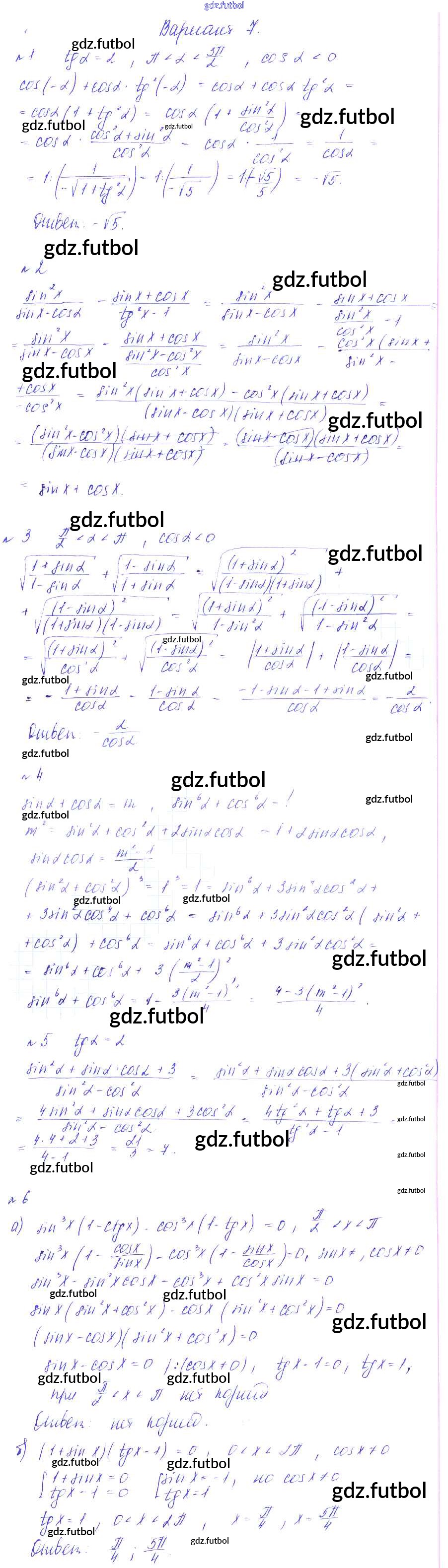 Готовые домашние задания по Алгебре за 9 класс Зив Дидактические материалы 2013 ФГОС - СР-13. Тригонометрические тождества вариант 7
