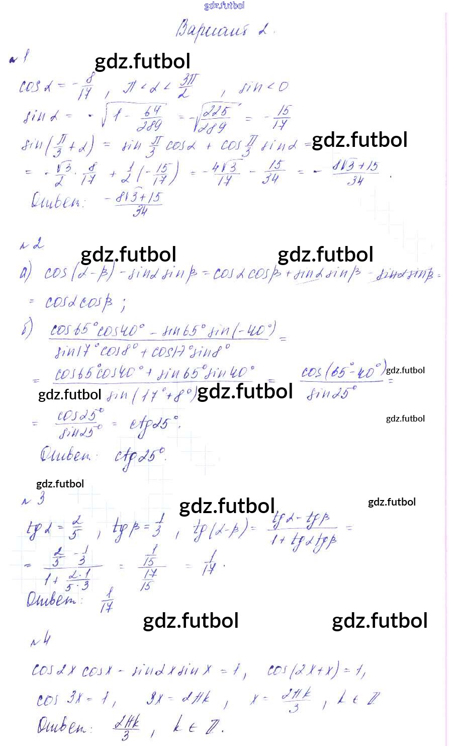 Готовые домашние задания по Алгебре за 9 класс Зив Дидактические материалы 2013 ФГОС - СР-14. Формулы сложения вариант 2