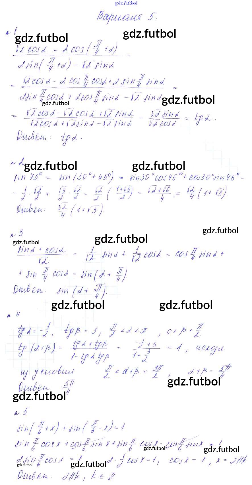 Готовые домашние задания по Алгебре за 9 класс Зив Дидактические материалы 2013 ФГОС - СР-14. Формулы сложения вариант 5