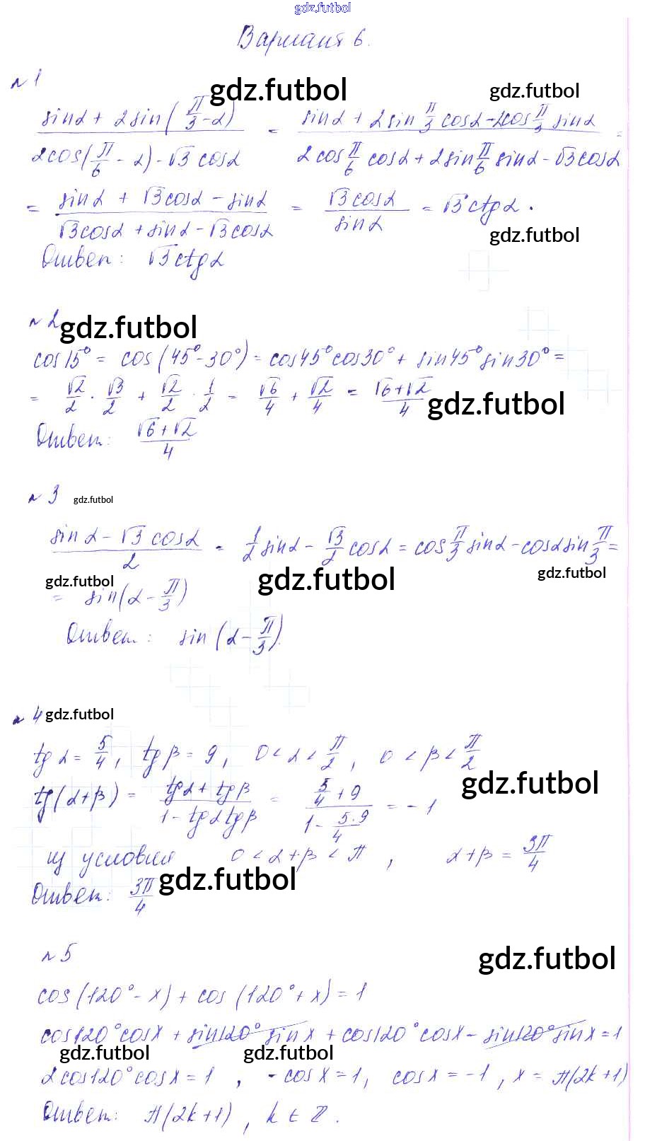Готовые домашние задания по Алгебре за 9 класс Зив Дидактические материалы 2013 ФГОС - СР-14. Формулы сложения вариант 6
