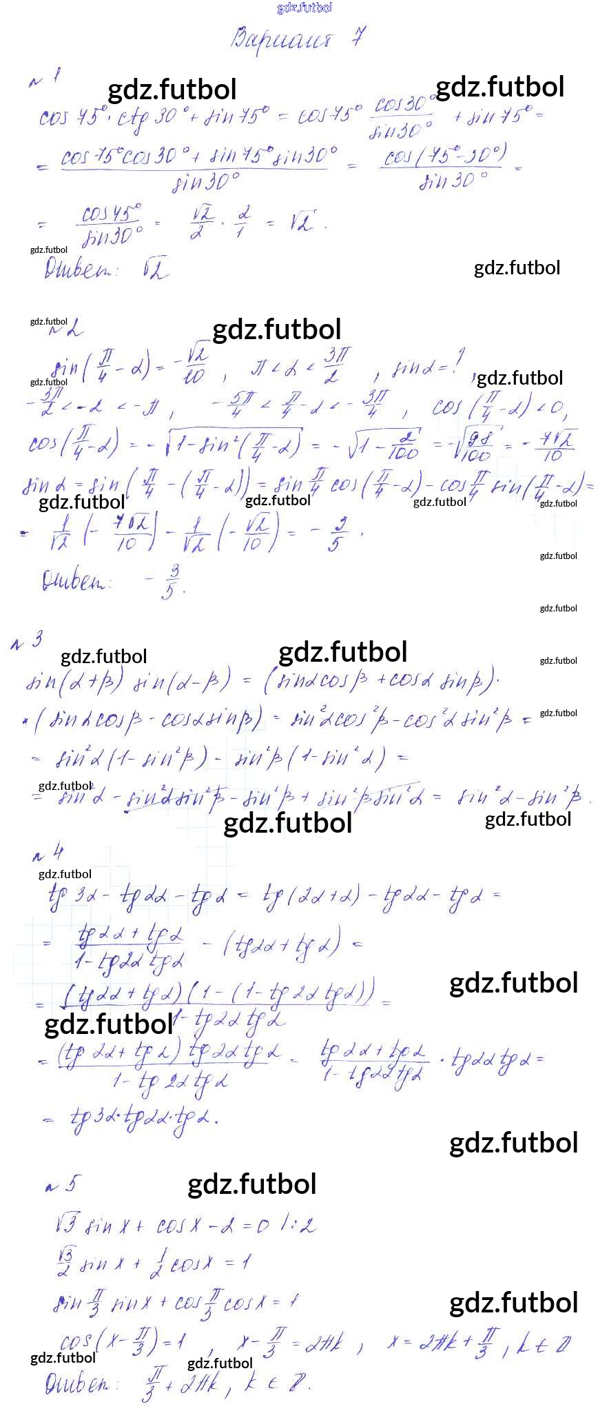 Готовые домашние задания по Алгебре за 9 класс Зив Дидактические материалы 2013 ФГОС - СР-14. Формулы сложения вариант 7