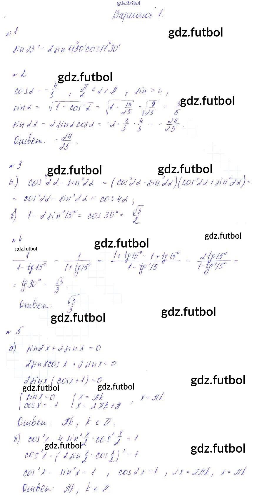 Готовые домашние задания по Алгебре за 9 класс Зив Дидактические материалы 2013 ФГОС - СР-15. Синус и косинус двойного угла вариант 1