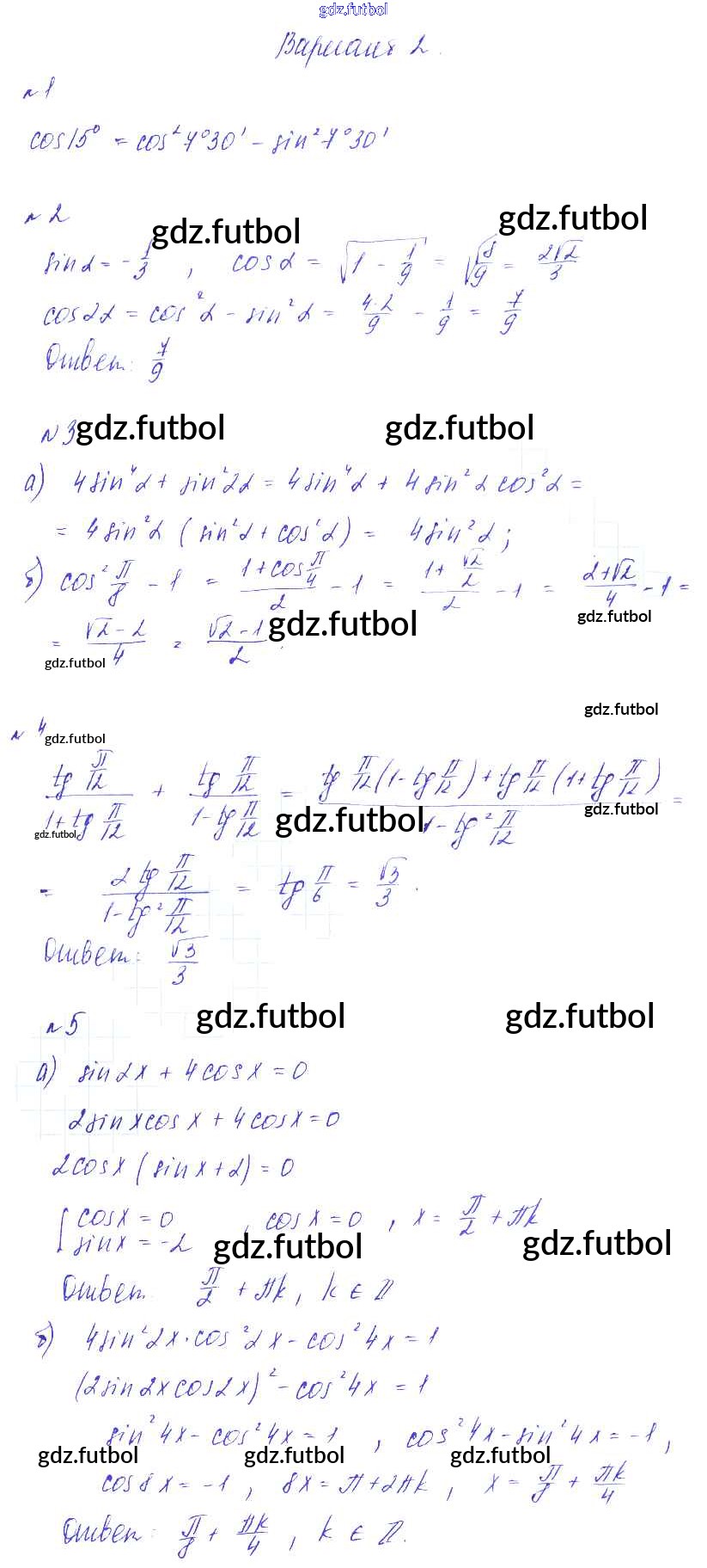 Готовые домашние задания по Алгебре за 9 класс Зив Дидактические материалы 2013 ФГОС - СР-15. Синус и косинус двойного угла вариант 2