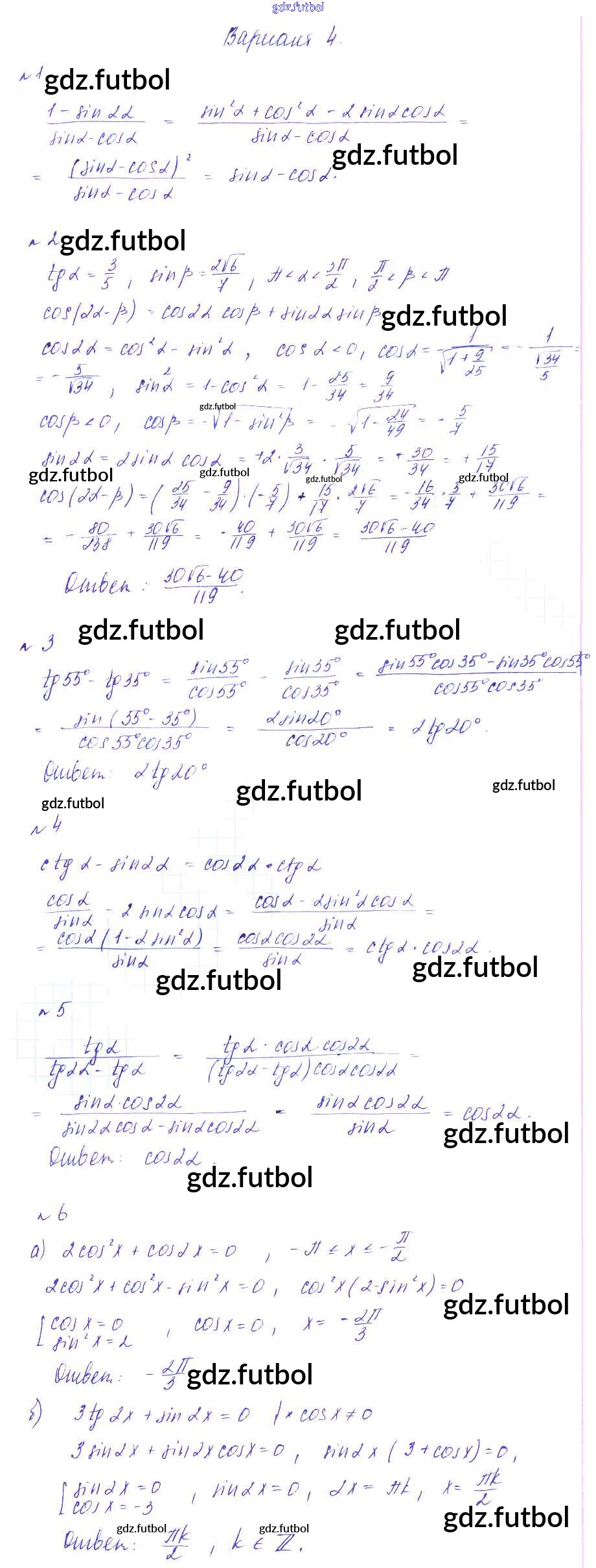 Готовые домашние задания по Алгебре за 9 класс Зив Дидактические материалы 2013 ФГОС - СР-15. Синус и косинус двойного угла вариант 4