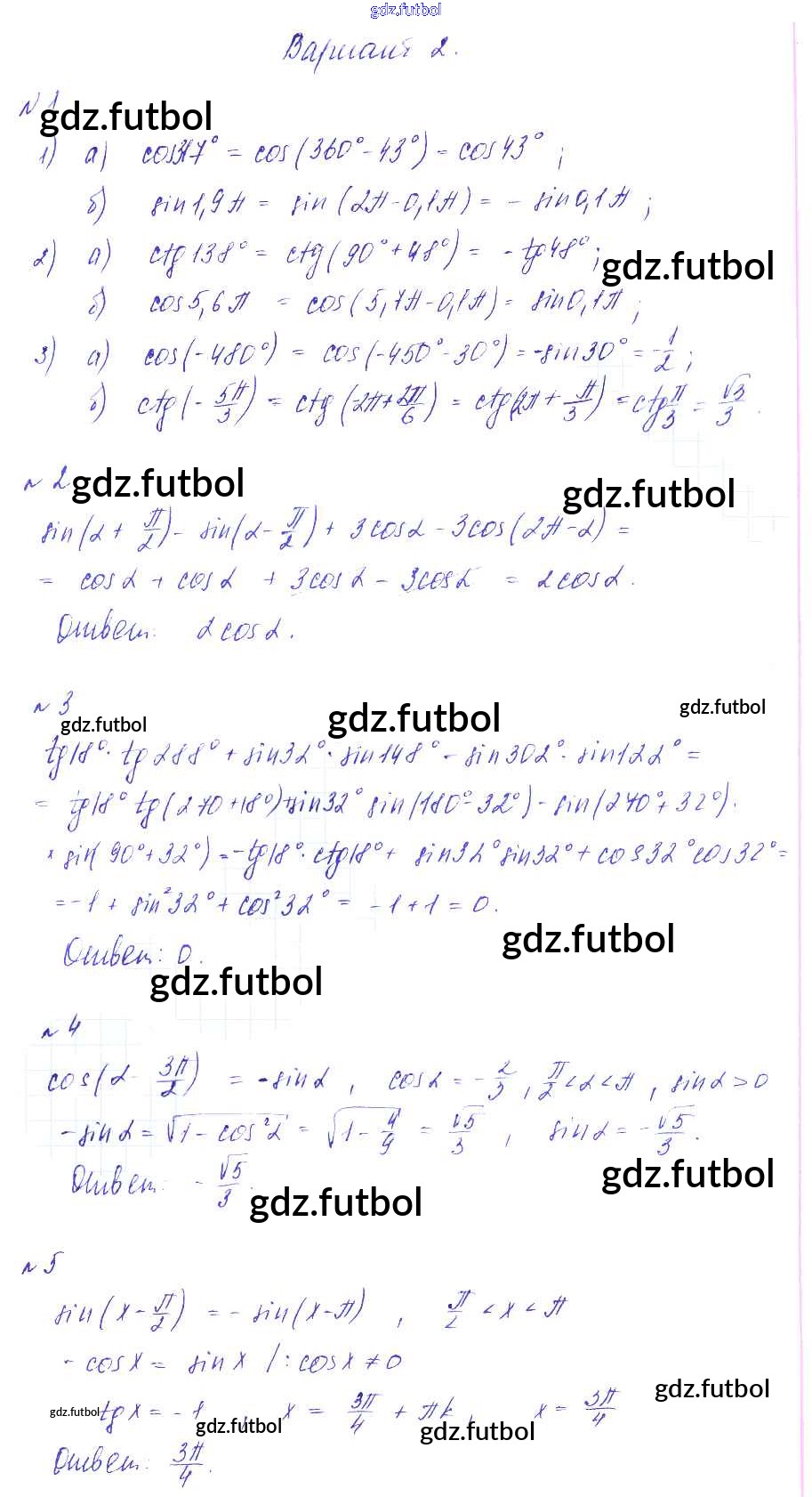 Готовые домашние задания по Алгебре за 9 класс Зив Дидактические материалы 2013 ФГОС - СР-16. Формулы приведения вариант 2
