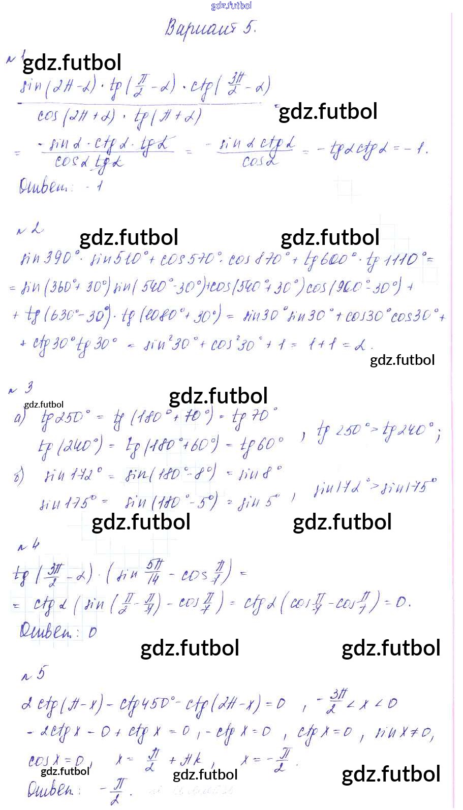 Готовые домашние задания по Алгебре за 9 класс Зив Дидактические материалы 2013 ФГОС - СР-16. Формулы приведения вариант 5