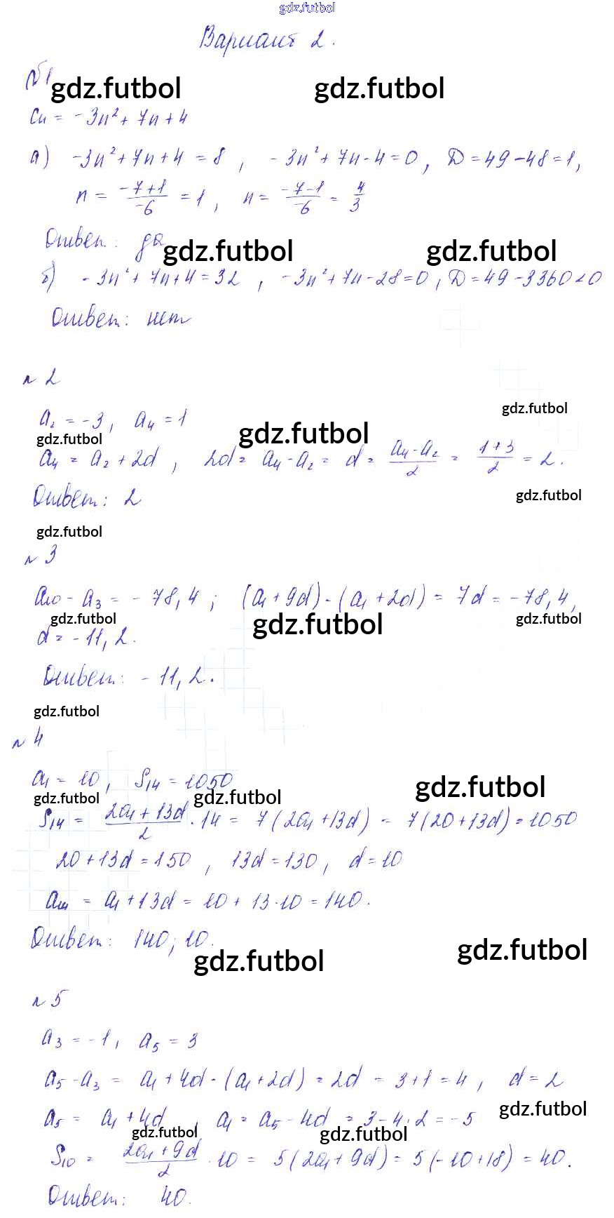 Готовые домашние задания по Алгебре за 9 класс Зив Дидактические материалы 2013 ФГОС - СР-17. Арифметическая прогрессия вариант 2
