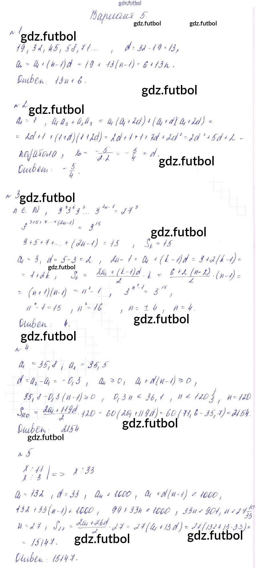 Готовые домашние задания по Алгебре за 9 класс Зив Дидактические материалы 2013 ФГОС - СР-17. Арифметическая прогрессия вариант 5