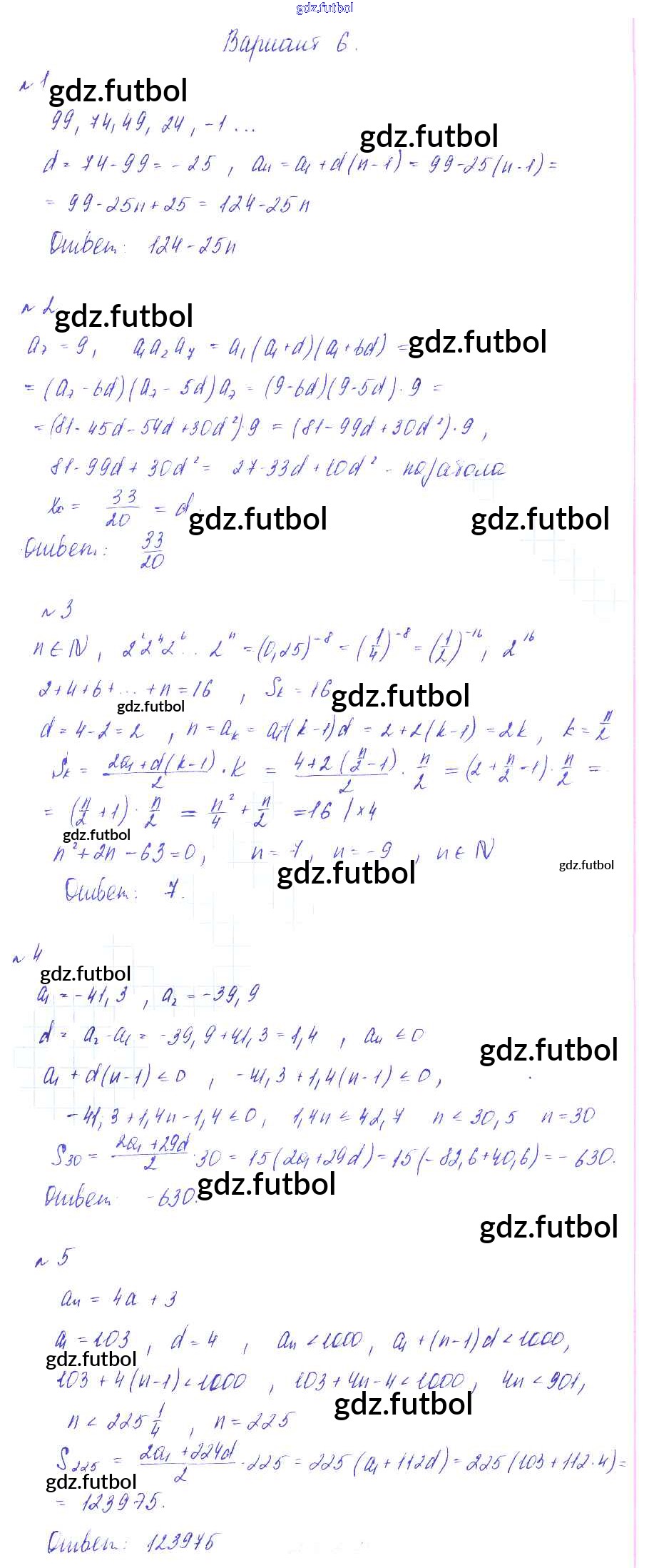 Готовые домашние задания по Алгебре за 9 класс Зив Дидактические материалы 2013 ФГОС - СР-17. Арифметическая прогрессия вариант 6