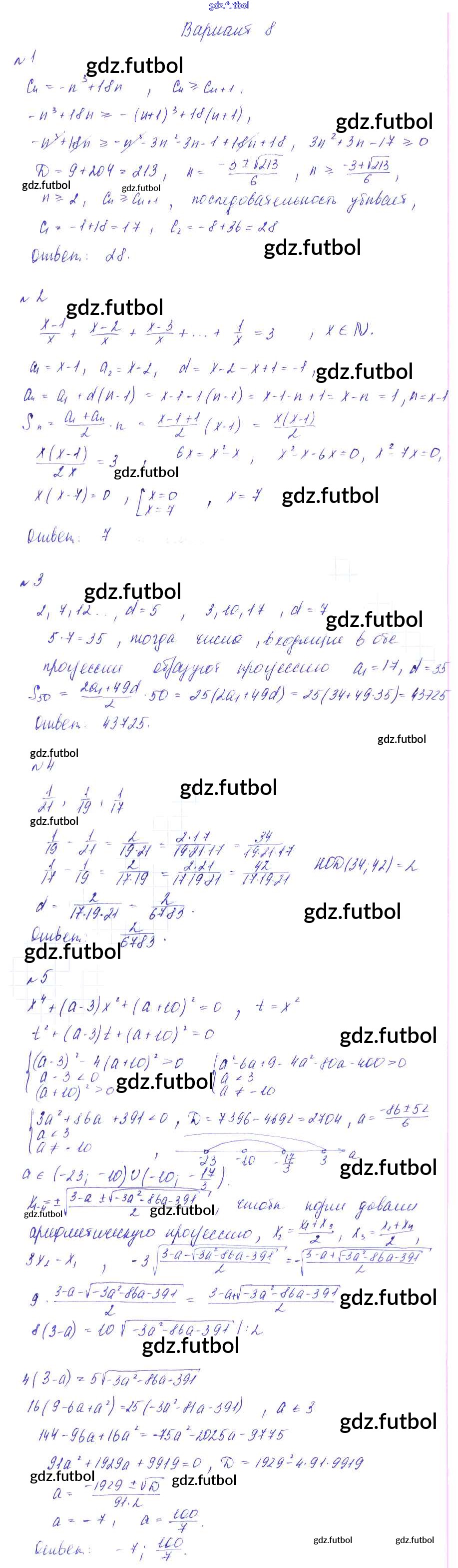 Готовые домашние задания по Алгебре за 9 класс Зив Дидактические материалы 2013 ФГОС - СР-17. Арифметическая прогрессия вариант 8