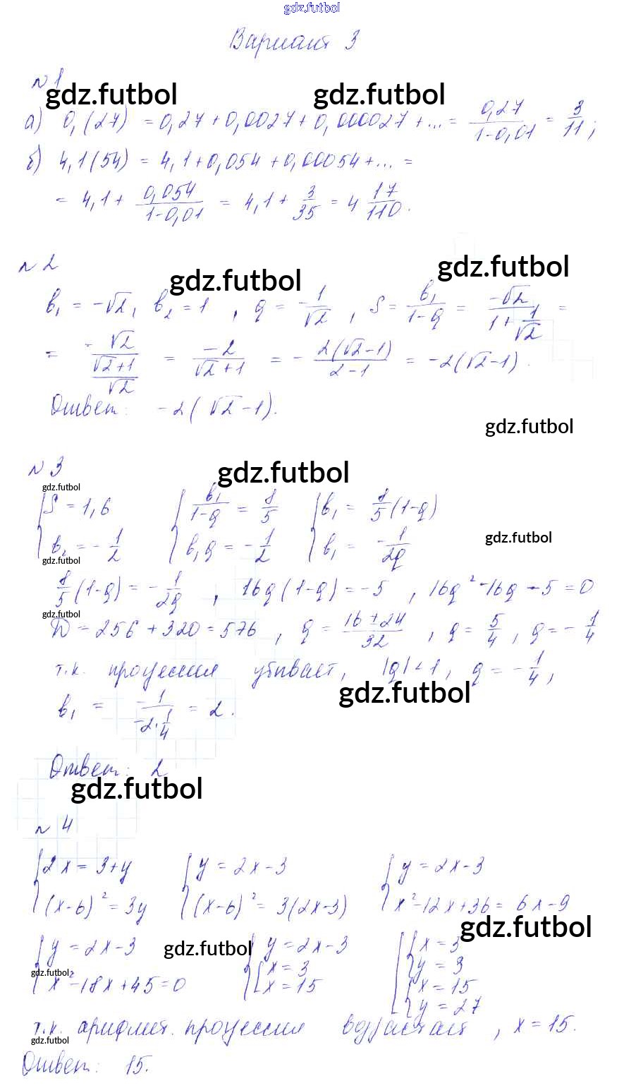 Готовые домашние задания по Алгебре за 9 класс Зив Дидактические материалы 2013 ФГОС - СР-19. Бесконечно убывающая геометрическая прогрессия. Смешанные задачи на прогрессии вариант 3