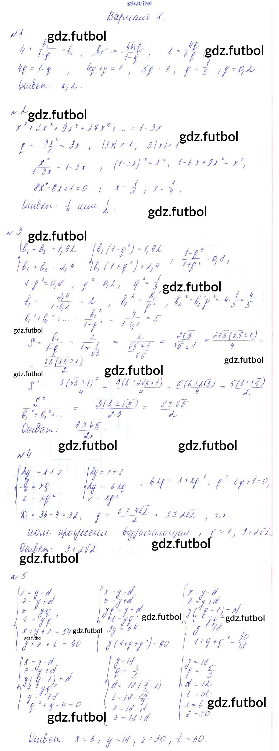 Готовые домашние задания по Алгебре за 9 класс Зив Дидактические материалы 2013 ФГОС - СР-19. Бесконечно убывающая геометрическая прогрессия. Смешанные задачи на прогрессии вариант 8