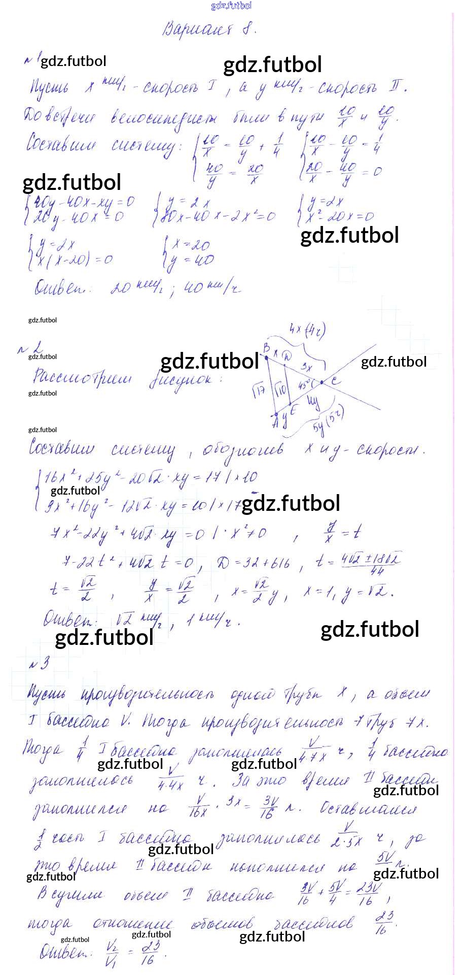 Готовые домашние задания по Алгебре за 9 класс Зив Дидактические материалы 2013 ФГОС - СР-4. Решение задач с помощью уравнений вариант 8
