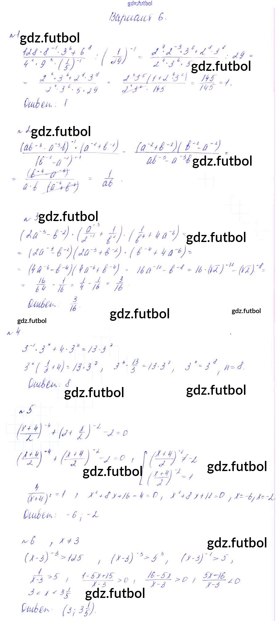 Готовые домашние задания по Алгебре за 9 класс Зив Дидактические материалы 2013 ФГОС - СР-5. Степень с целым показателем вариант 6