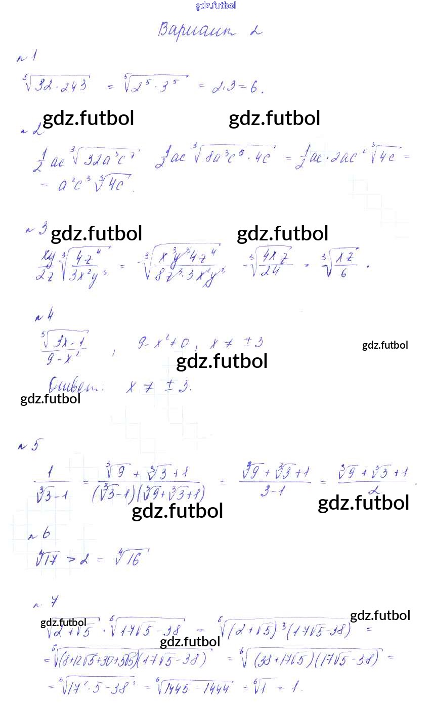 Готовые домашние задания по Алгебре за 9 класс Зив Дидактические материалы 2013 ФГОС - СР-6. Корень натуральной степени вариант 2